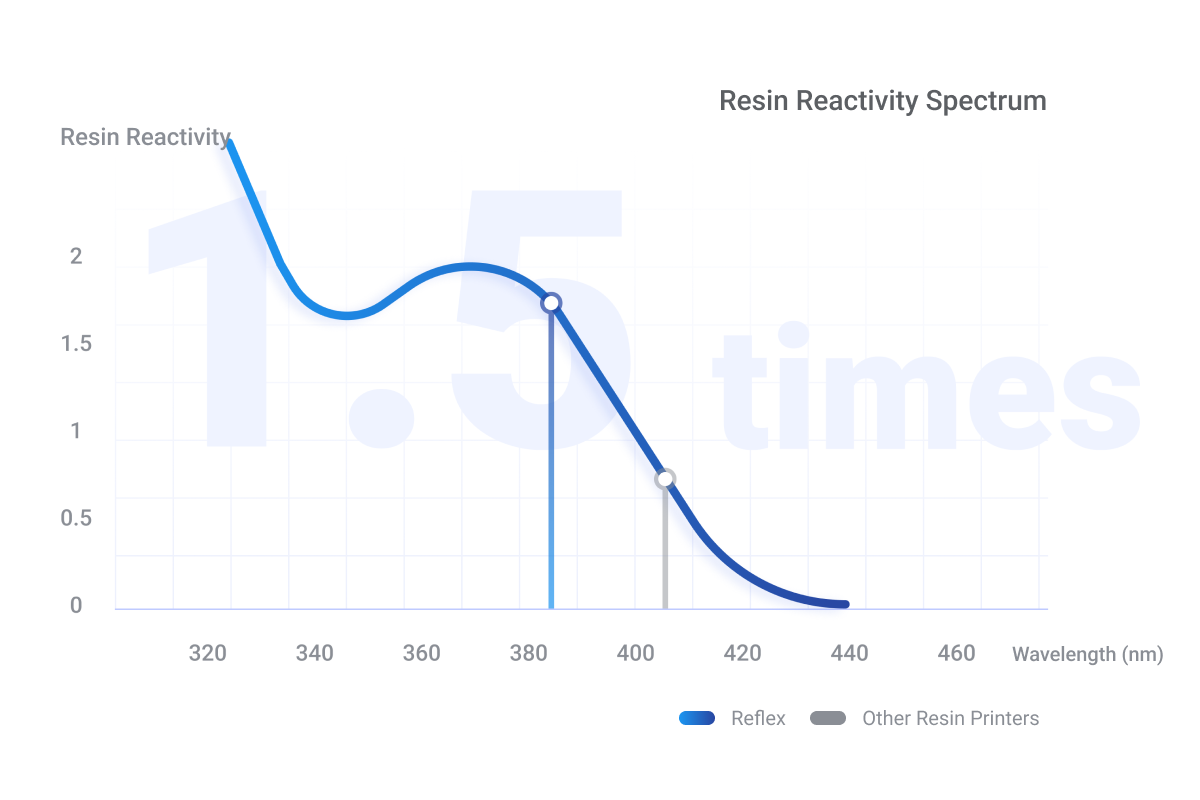 HeyGears ist die einzige Marke in der Branche, die eine selbstentwickelte 385nm+ COB-Lichtquelle und Linsengruppe verwendet, die eine bessere Lichtgleichmäßigkeit und Kollimation bietet. Lichtquellen mit kürzerer Wellenlänge können auch eine leistungsstärkere Materialhärtung unterstützen.