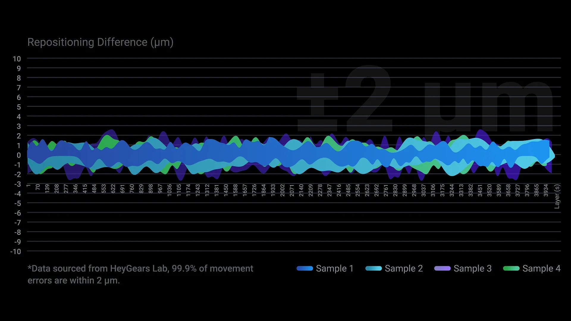 *Data sourced from HeyGears Lab, 99.9% of movement errors are within 2 μm.