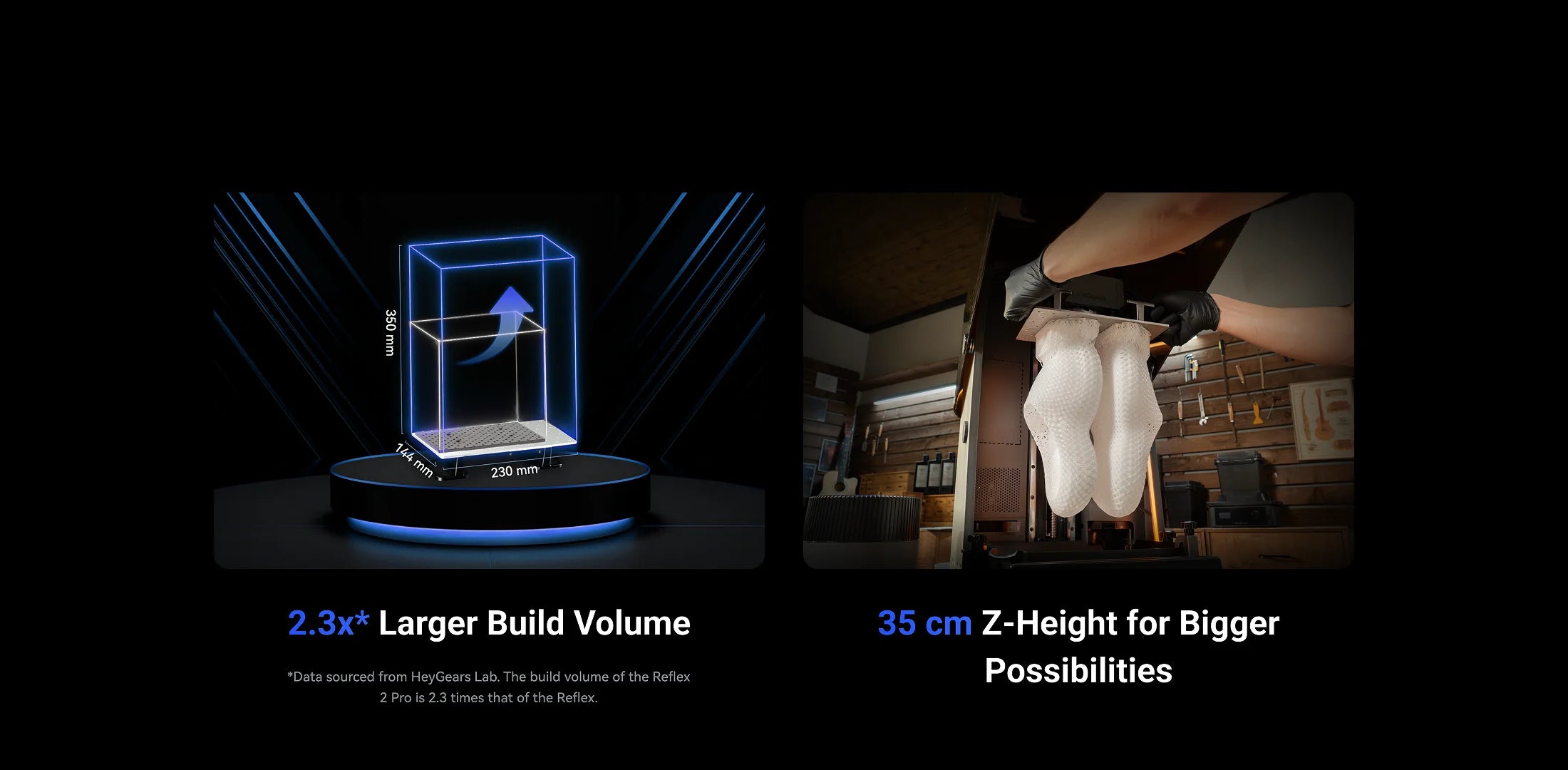 The Reflex 2 Pro features a smart scraper-assisted temperature control system which heats the resin more efficiently, keeping it at optimal printing temperature during the whole printing process and prevents resin sedimentation and residue at the same time.