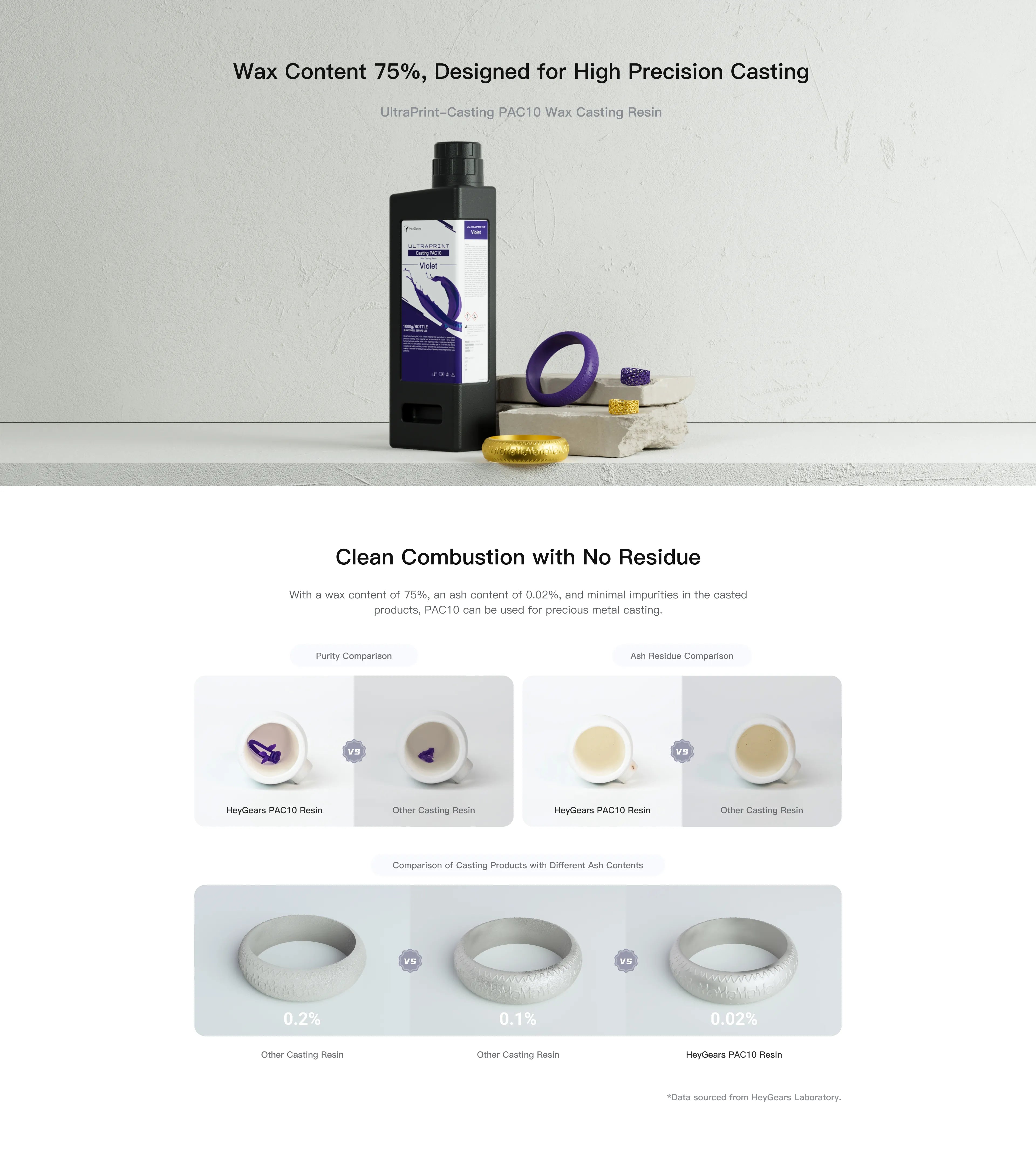 UltraPrint-Casting PAC10 features a high wax content, clean combustion result, high printing precision, a detailed surface, and a shorter finishing time. It can burn cleanly and is suitable for casting jewelry and precious metals.
