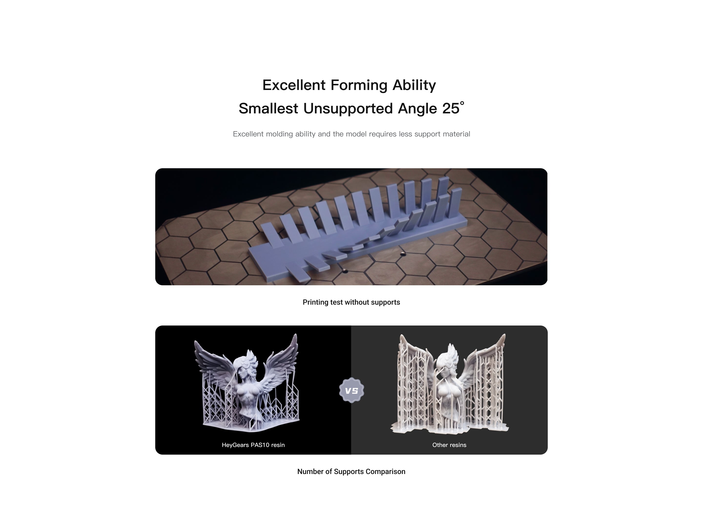 - Smallest unsupported angle 25°- excellent forming ability